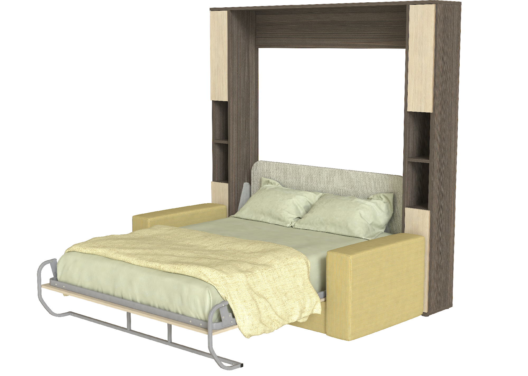 Механизм шкаф-кровати Модена — это современная система трансформации, предназначенная для производства мебели-трансформер с диваном. Конструкция механизма обеспечивает синхронное открывание кровати и автоматическое выдвижение дивана, что позволяет быстро превратить гостиную в полноценную спальню.