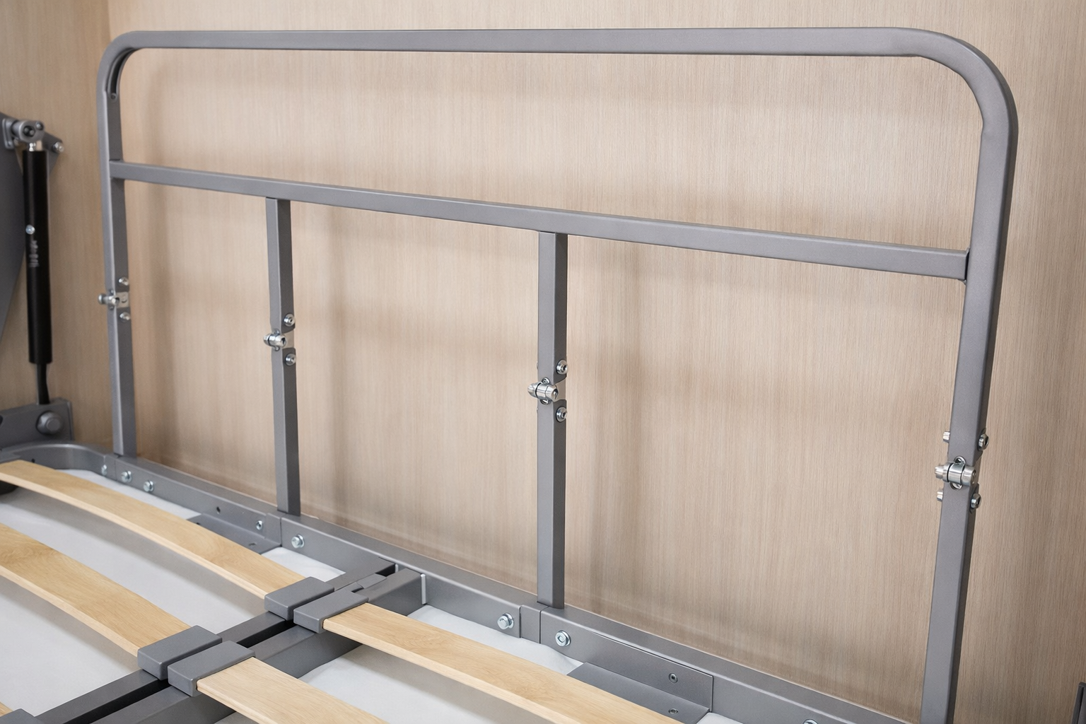 Газовые амортизаторы обеспечивают плавное открытие и закрытие кровати без усилий.