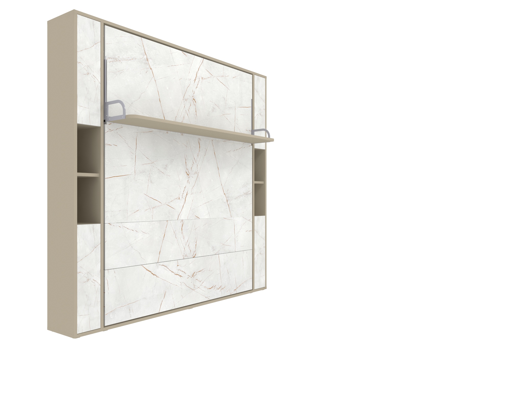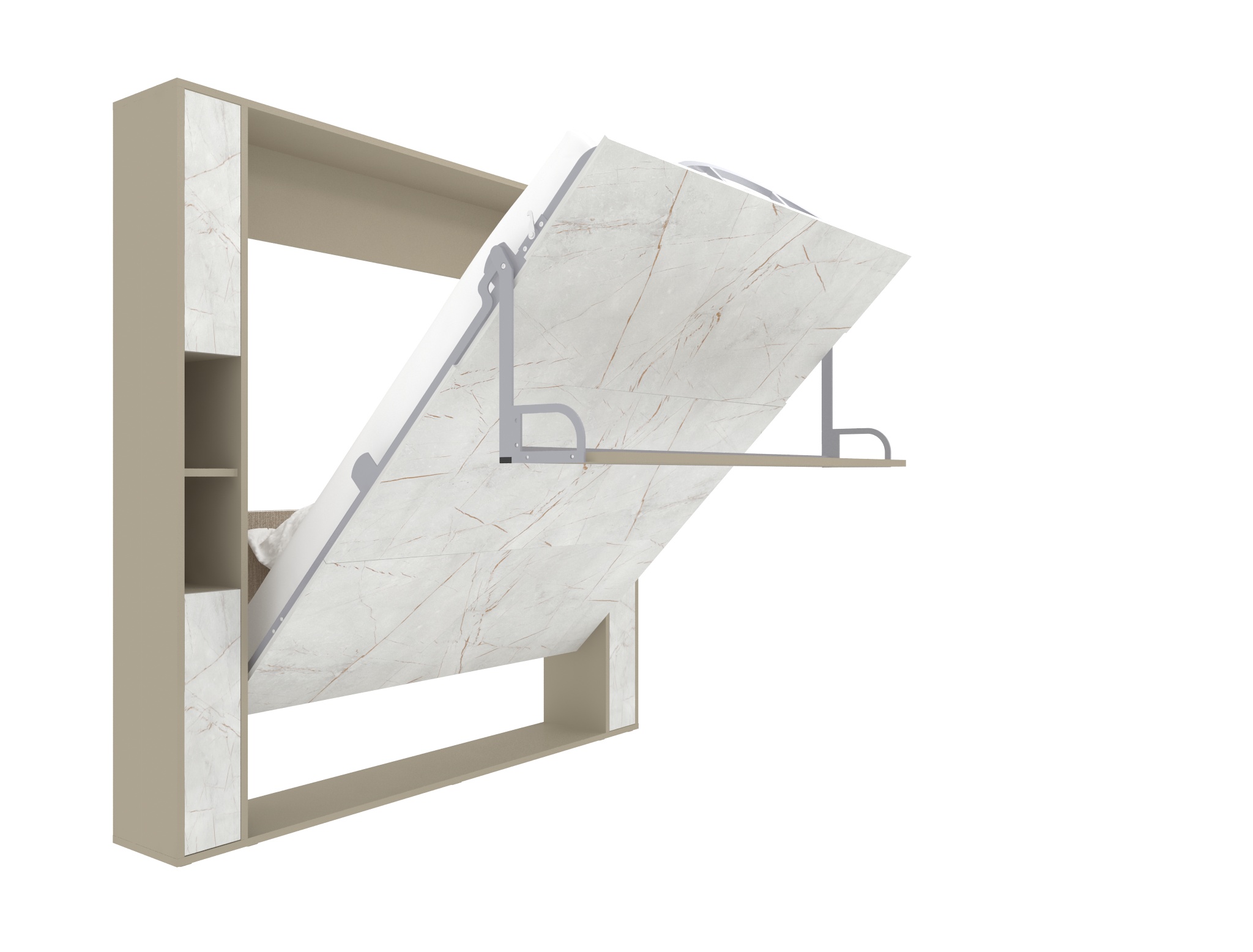Механизм обеспечивает плавное и удобное открытие кровати. Шкаф-кровать легко переводится из вертикального положения в полноценное спальное место.