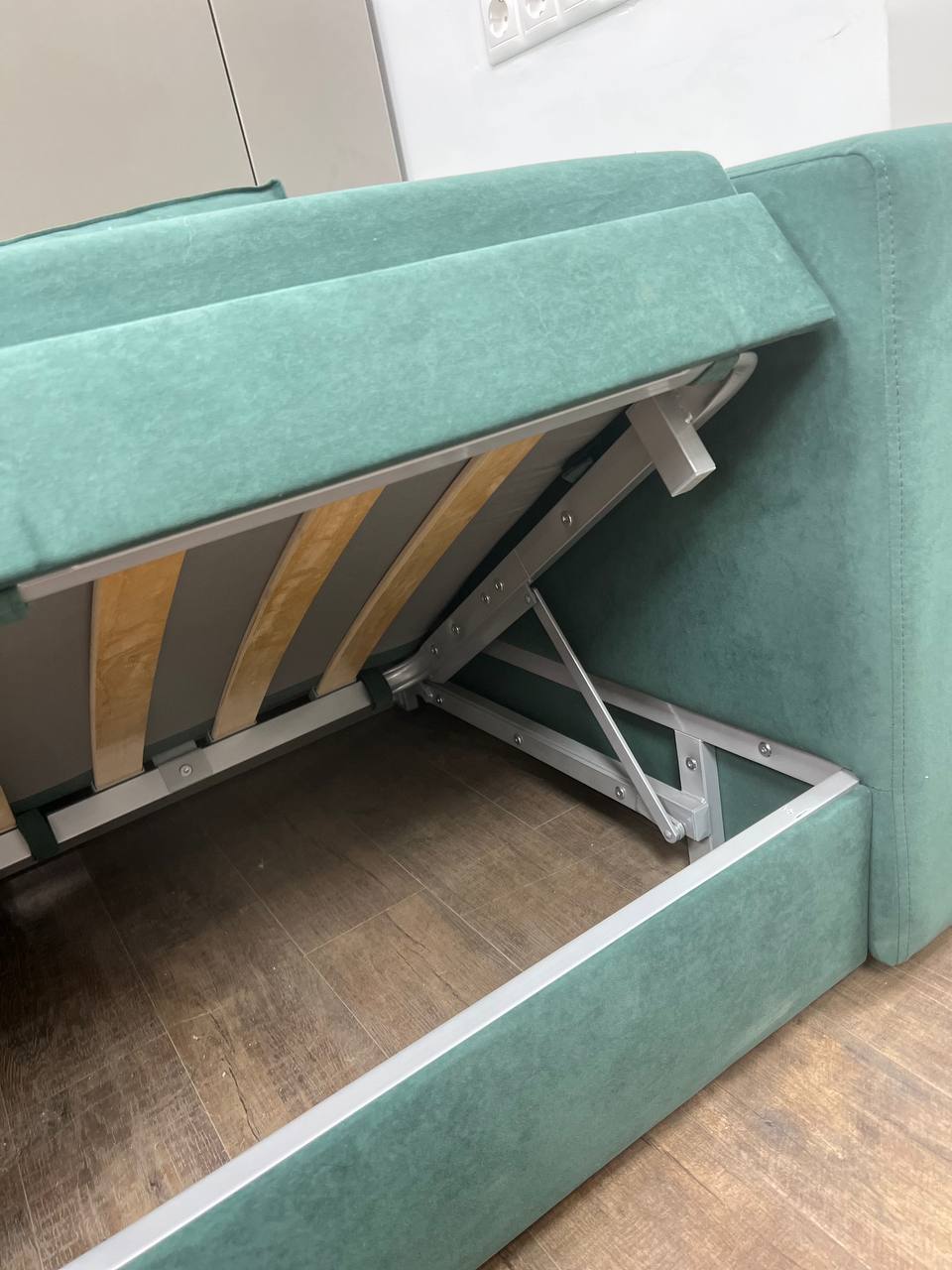 Механизм оснащается газовыми амортизаторами, которые обеспечивают плавное и безопасное открытие и закрытие кровати.