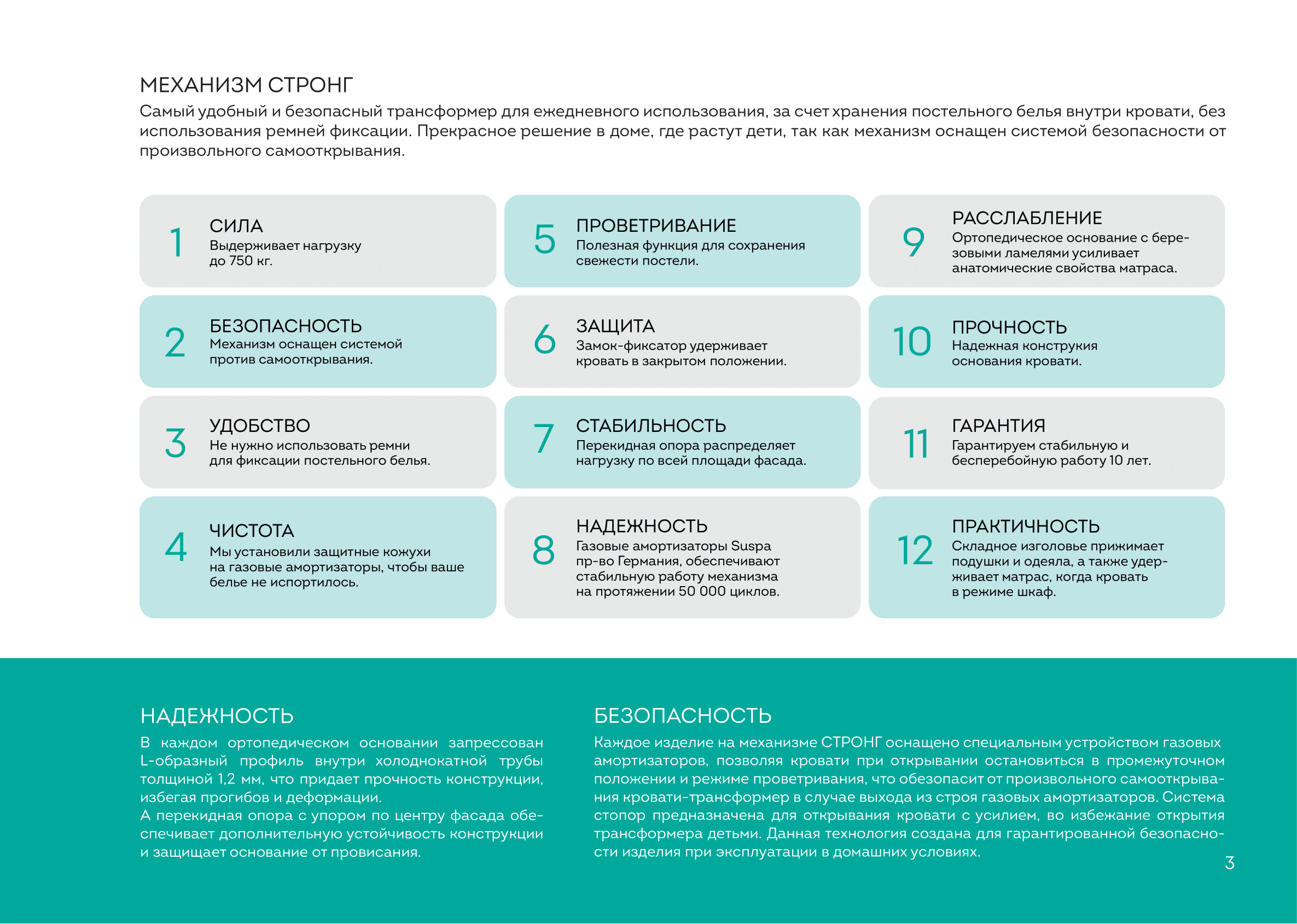 - Удобство: механизм STRONG позволяет открывать и закрывать кровать без использования ремней фиксации.